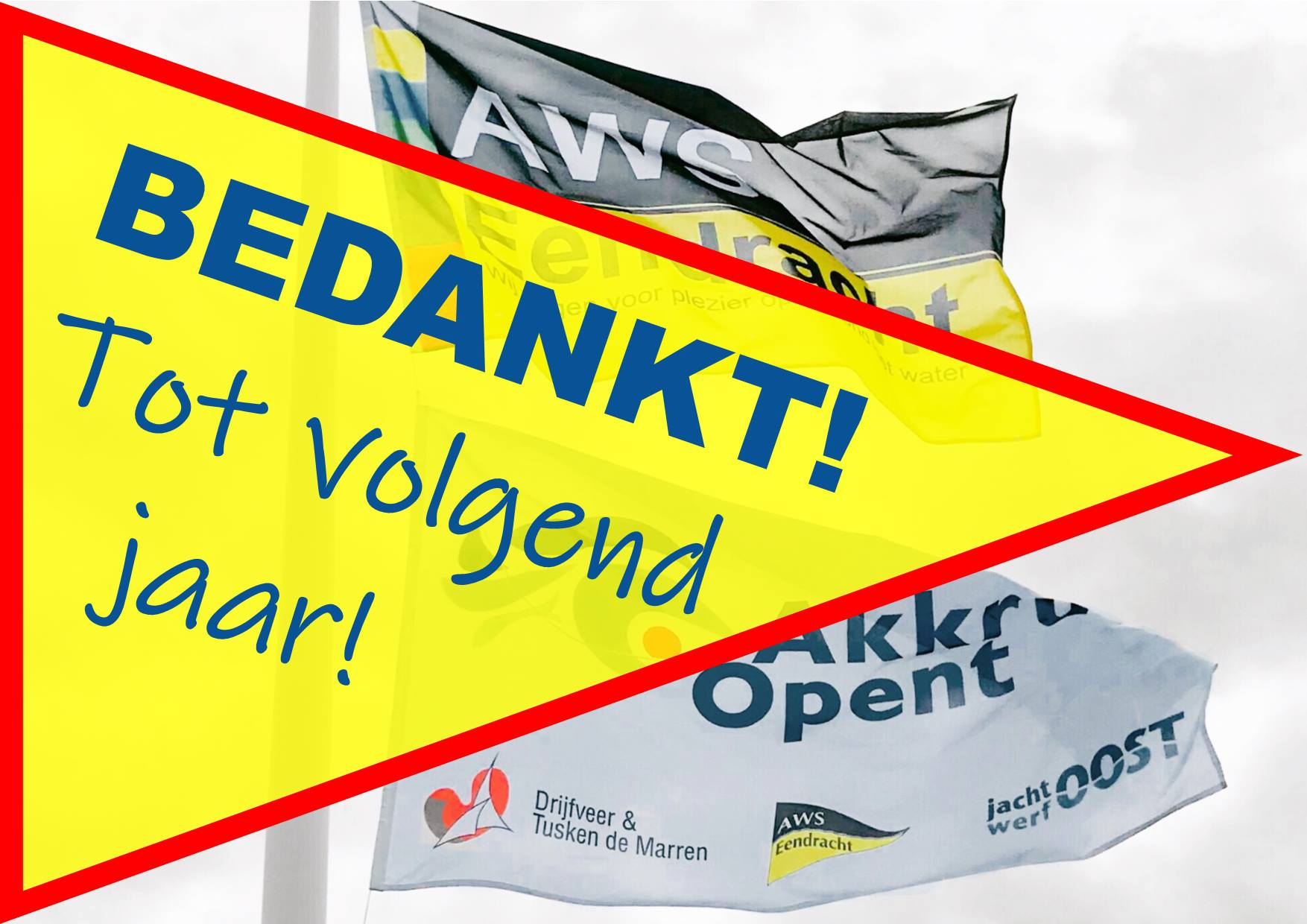 Voan – Verenigde Ondernemers Akkrum-Nes, Gemeente Heerenveen, Wethouder Hans Broekhuizen, Brandweer Akkrum, Marten Dijkstra, FRIS kleding en kado, BliksemReclame, De Dames van Akkrum, Woonwinkel De Regent Akkrum, De Kletskous. Damesmode, Het Heerenhuys – mannenmode – Akkrum, Kaashuys Akkrum, Zeilschool Pean, Cios Watersport, Switch Akkrum, Joris Davidse, Roeiteam Kanniethex&, Kromme Knilles, FrisianYachts, It Pakhûs, Reddingsbrigade Heerenveen,Recreatiepark Tusken de Marren, Dikkie’s Palingrokerij, Hotel/Restaurant Goerres, Jeroen van Zuylen, Cafetaria Veenema, Berend Riemersma, Adri de Boer Gretha Andela, DJ SoolZ, Piet de Jong, On Deck, KiteMobile, @Brunsmann, Hoekstra Brandbeveiliging, VOF De Vooruitgang, Band Soulciety Boels verhuur, De Sayter, Alexander Scholtens Weert, Zander Vliegen, Lenny Winter, Ron Dobber Marten Boonstra De Echte Bakker te Akkrum, Keurslagerij & Worstmakerij Spijkerman, vrijwilligers van AWS Eendracht, Giraar V Schijndel, Ans van Schijndel, medewerkers Drijfveer & Tusken de Marren, medewerkers Jachtwerf Oost, medewerkers De Koken